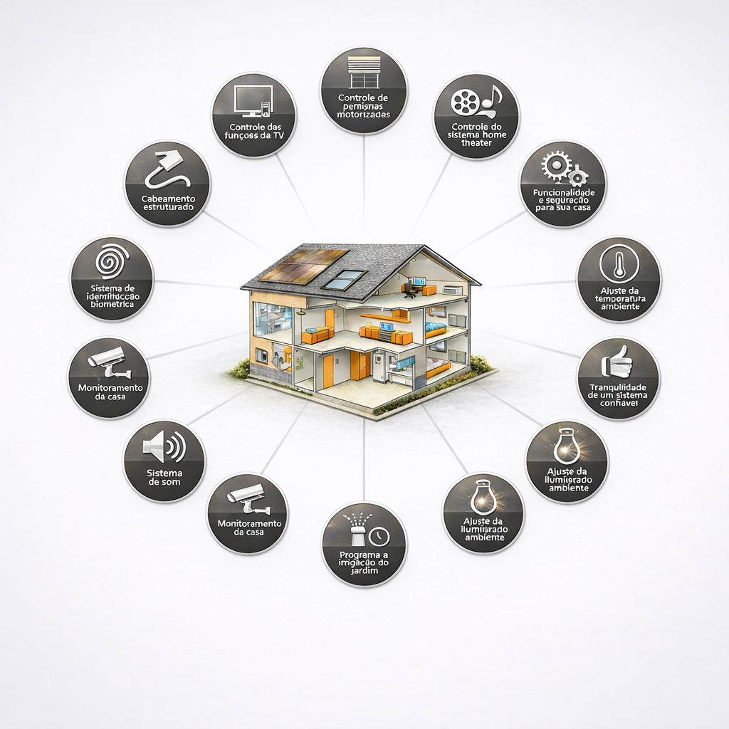 “Iluminação, cortinas, climatização e segurança integradas em um só sistema.”
